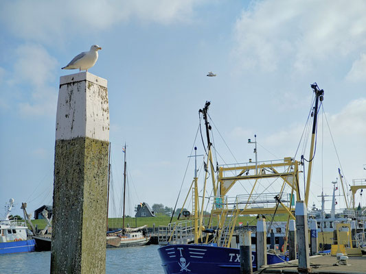 Selbst die Stevensluis war einladend auf grün geschaltet, so dass wir nicht haben festmachen müssen, sondern direkt einfahren konnten. Zusammen mit sechs weiteren Segelbooten ein einfaches Vergnügen. Und schon waren wir zweieinhalb Stunden später in Oudeshild auf Texel. Boxen waren en masse frei, das ist der Vorteil der Vorsaison. Bei bestem Wetter mit bis zu 17° waren wir ab ca. 14.30 Uhr fest und konnten den Tag noch genießen. Beide Stridas ausgepackt und rauf auf die Räder.
