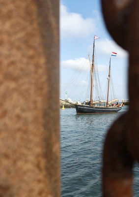 Freitag Brückentag? Hochwasser Den Oever genau Mittags? Dann nichts wie auf nach Texel! Wind war keiner vorhergesagt, also durchmotoren. Da ich mich mit der Entfernung leicht vertan hatte, 1 Stunde zu früh gestartet -um 5.30 Uhr waren wir los. Einer fährt, einer schläft noch -passt. Am Anfang direkt viel Frachtschifffahrtverkehr zur Princessmargrietsluis mit notwendigen Ausweichmanövern -das schärft die Aufmerksamkeit. Ansonsten die perfekte Zeit für Sonnenaufgangsfotos. Außerdem ist Saisonbeginn. Da ist das Boot vom Winter noch schmutzig. Aber wenn der Motor läuft, gibts heißes Wasser. Also ran an den Schrubber und Deck und Cockpit geputzt. Stückweise erst mit dem Schrubber, dann mit dem Akku-Hochdruckreiniger mit Ansaugung direkt vom Ijsselmeer. Tatsächlich geht das bis 5 kn problemlos, das Schlauchende taucht nicht soweit aus, dass kein Wasser mehr gezogen werden kann. Nach zwei Stunden wäre das Deck sauber gewesen. Wäre. Wenn wir nicht wegen der Windstille schon den ersten Mückenmassenangriff gehabt hätten. Wer das kennt weiß: Alle weißen Flächen sehen dann ziemlich schwarz aus. Die stechen nicht, sitzen aber überall. Bis sie nach einem Tag absterben. Mist. Aber die Grundreinigung war durch und die Mücken wurden später wieder weggespritzt...
